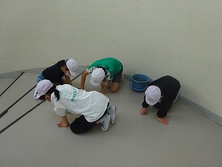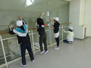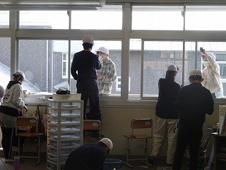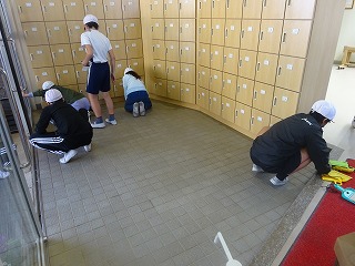 心を込めて,お世話になった学校をきれいにしている6年生です。