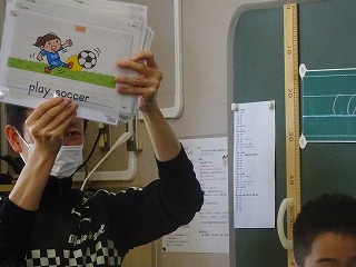 ジェスチャーしたものを英語で答えます。