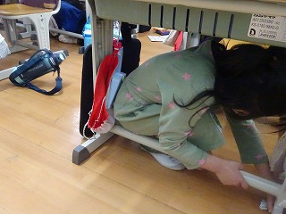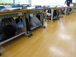 放送をよく聞き,直ちに机の下に避難しました。