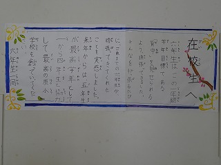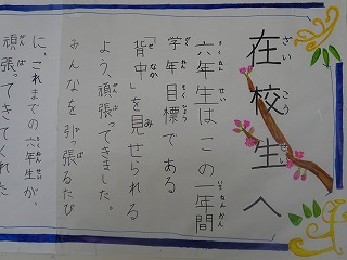 卒業生から在校生に贈られたメッセージが昇降口前に掲示してあります。