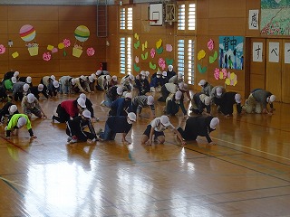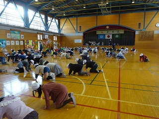来週行われる卒業式に向けて,5年生が体育館をきれいにしてくれました。