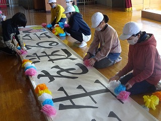 一昨日,6年生を送る会の準備に一生懸命取り組み,汗を流してくれた5年生。