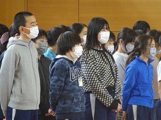 在校生と先生方に,「きもち」を歌で伝えます。