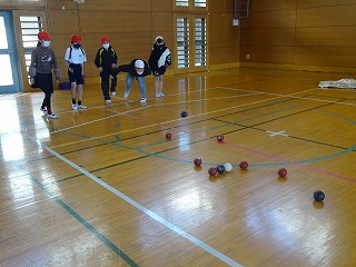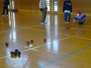 白いボール(ジャックボール)に,より近い方が得点となります。