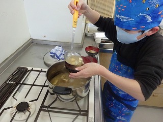 友達と協力し合って作ったお味噌汁は,最高に美味しかったことでしょう。