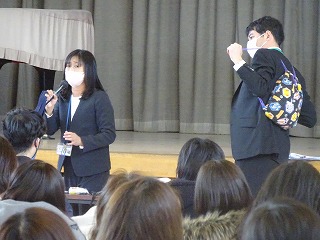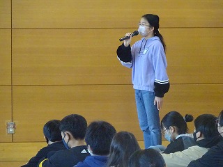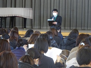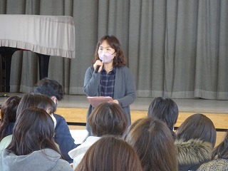 保護者と教職員が一体となって生活・教育環境を向上させていくことを目的としてご尽力いただいている「保護者と教職員の会」の代表から組織と活動の紹介がありました。