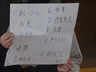 日常生活や学習用具の他に,体操服袋等の作成についても説明がありました。