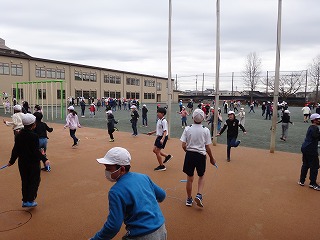 先週金曜日から「なわとび月間」として業間休みと昼休みになわとび運動を行っております。