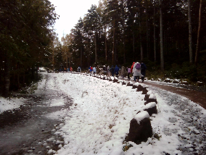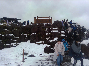2023年10月6日 16時10分なんと、丸沼高原の気温は氷点下で、雪が積もっていました。