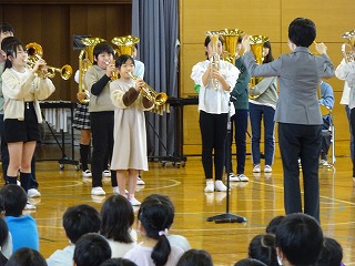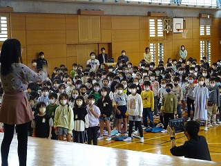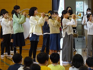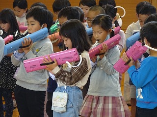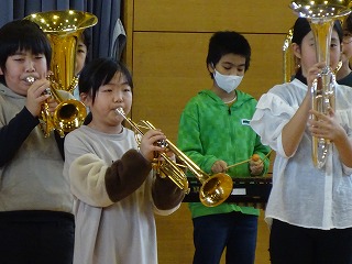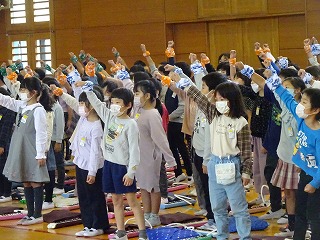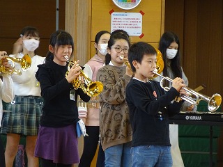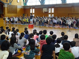 2年生と5年生による音楽交流とハートフルコンサート壮行会を行いました。