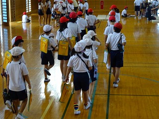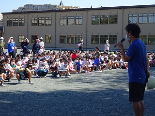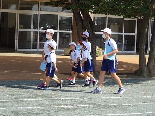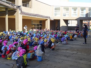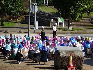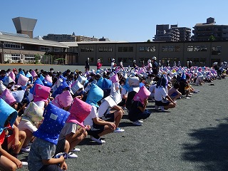 校庭と正門前広場に分かれて,避難しました。