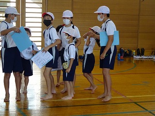 県教育委員会の方から,「どの学級の子どもたちも大変落ち着いて学習に取り組んでおり,特に6年生がしっかりしています。」と,お褒めのお言葉をいただきました。