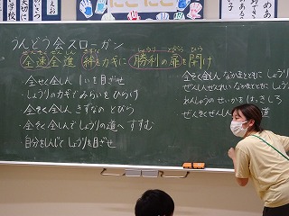 運動会のスローガンについては,まず各学級で話し合います。