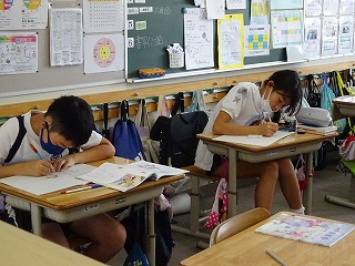自分の現在過去未来の姿について考え,想像画を完成させるためのアイディアスケッチを描きました。みんな,熱心に取り組みました。