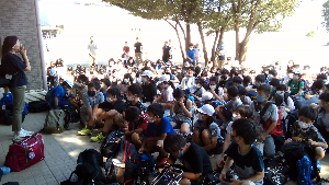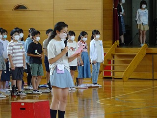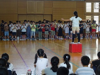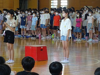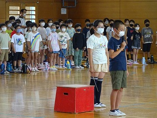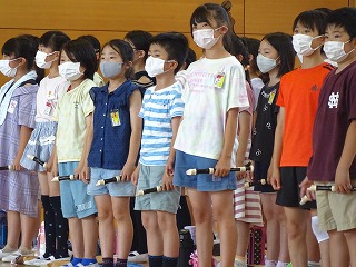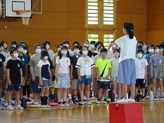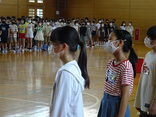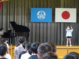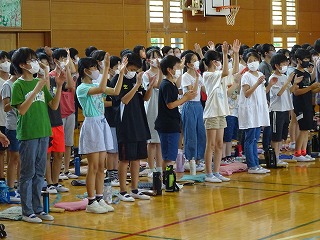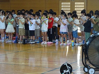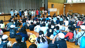 本日5校時に予定していた音楽集会は,暑さ対策として2校時に変更し実施しました。