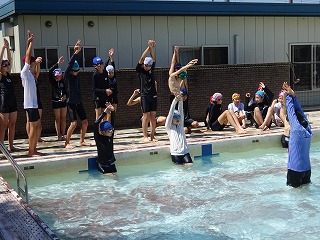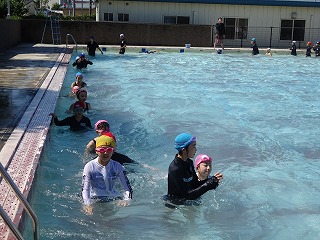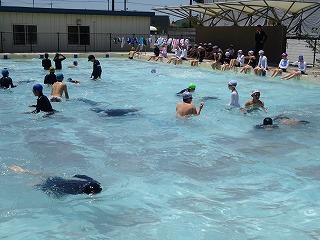 6年生は,自分たちできれいにしたプールにやっと入れました。