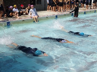 今日も朝から大変暑く,水泳学習には最高の天気でした。