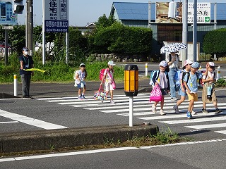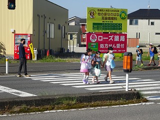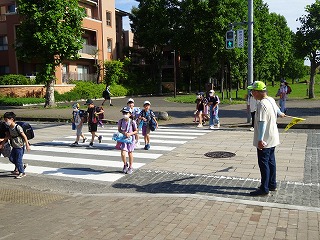 地域の方と職員により登下校時,交通安全指導および児童の見守り活動を行いました。