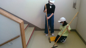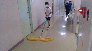 自然教室2日目になりました。朝食前、子どもたちは身支度を整え、しっかり掃除をしました。