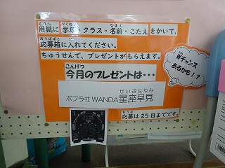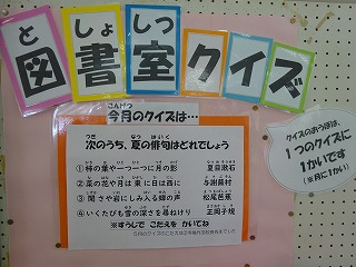 学校司書が子どもたちのためにクイズを作成してくれました。なんと、プレゼントまであります。