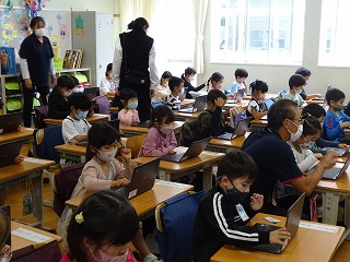ICT支援員も入り、タブレットでの学習を教えてくださいました。