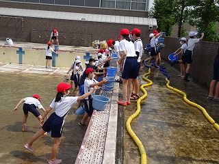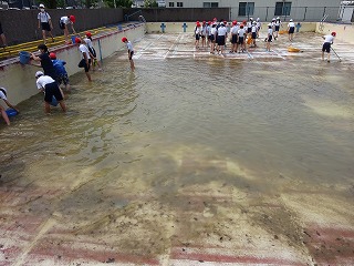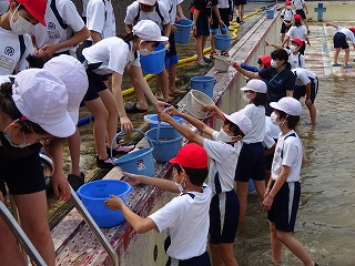 6年生の皆さん、本当にありがとうございました。次は、いよいよ水を入れていきます。