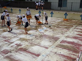 先週金曜日、6年生が一生懸命プール掃除をしてくれたおかげで、このようにきれいになりました。
