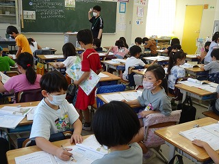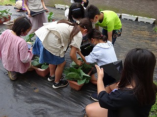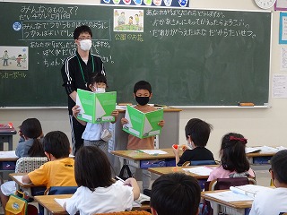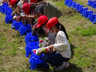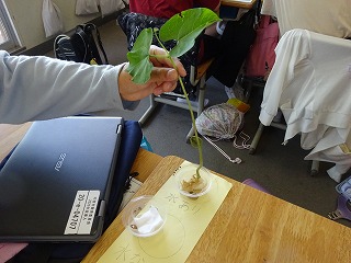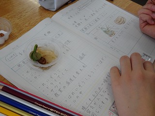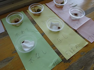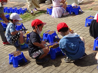 2年生からプレゼントしてもらった「あさがおの種」を植える準備をしました。