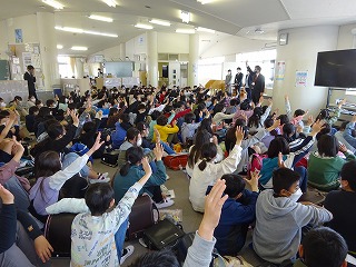 6年生が「原小あいうえお」のクイズを出してくれました。