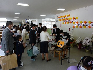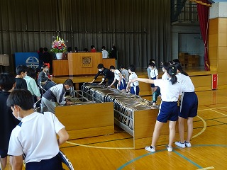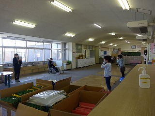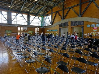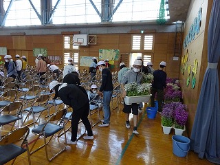 入学式の準備です。6年生全員で1年生を迎える準備をしています。