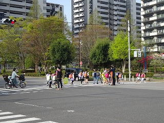 2022年4月13日 15時29分今日も大人たちが、子どもたちの登校を見守ってくれました。