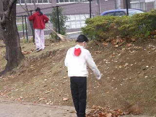 学校のために何かできないかと、6年生が自主的に朝、落ち葉掃きをしてくれました。