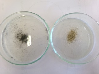 左は桜島の火山灰、右は木下貝層の砂です。