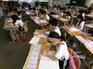 本日8時から、3年生以上の希望者は「漢字マスター」(印西市の漢字検定)を行いました。