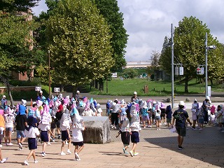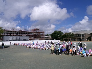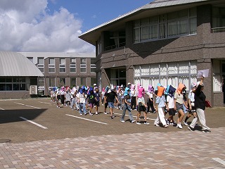 地震がおさまったという放送を聞いて、正門前広場または校庭へ二次避難しました。