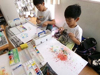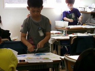 一人一人、絵の具をにじませた素敵な世界を描いていました。