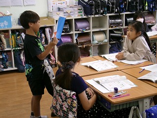 自分で考えた後、グループの友だちに自分の考え方を伝えました。