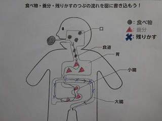 今日の学習問題は、「食べ物はどこで、どのようなしくみで消化、吸収されているのだろうか。」です。