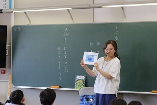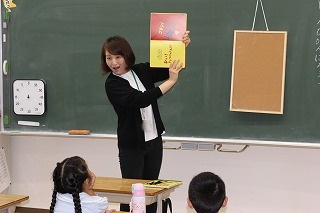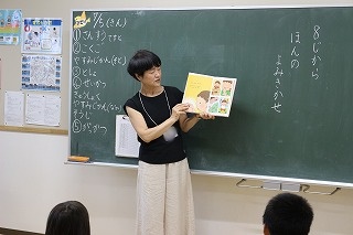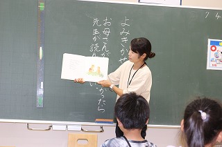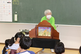 今日は、1年生から3年生の教室で本を読んでくださいました。