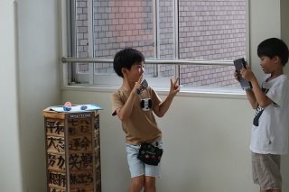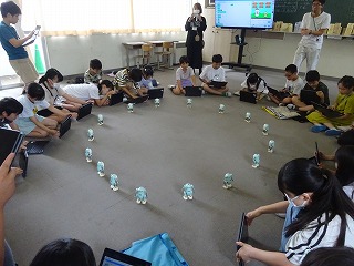 プログラミングによって、ロボットがコミカルな動きをしました。