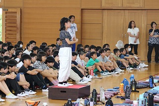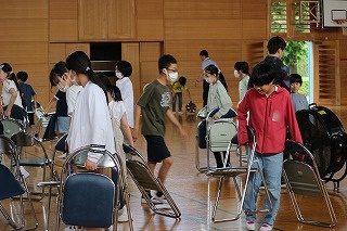音楽集会が始まる前に、6年生が保護者用の椅子を並べてくれました。