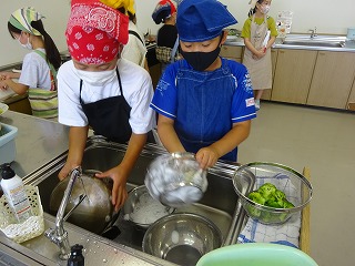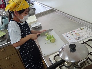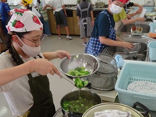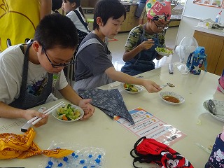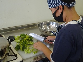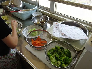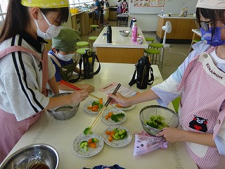 今日のめあては、「ゆで野菜のサラダを作ろう。」です。