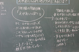 今日のテーマは、「えがおいっぱいのクラスにするには?」です。