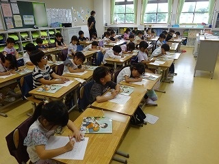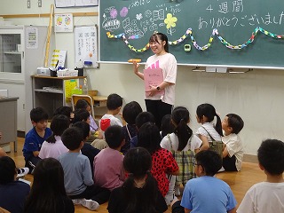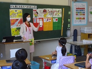 本日午前、学校給食センターから栄養教諭の先生をお呼びし、食育の授業を行いました。