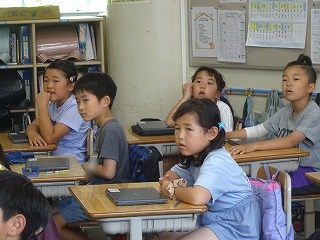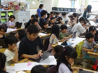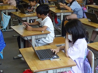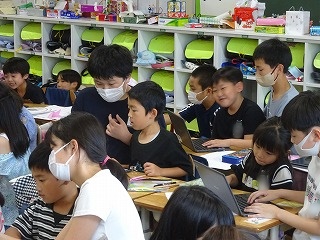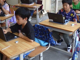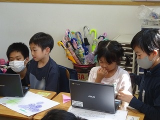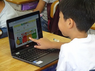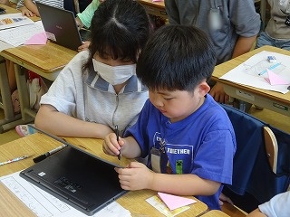 6年生が1年生に、学習用のアプリの使い方を教えてくれました。