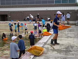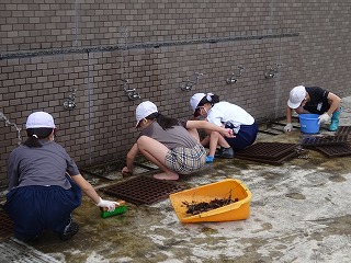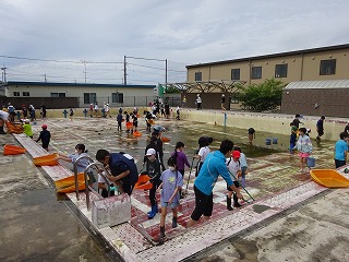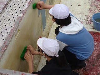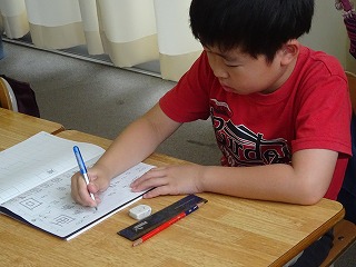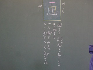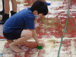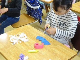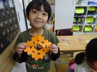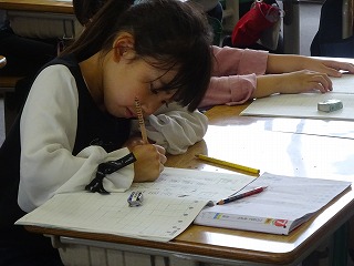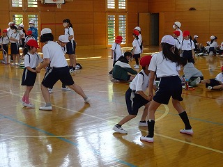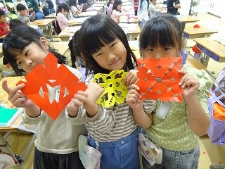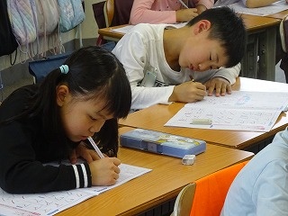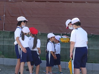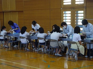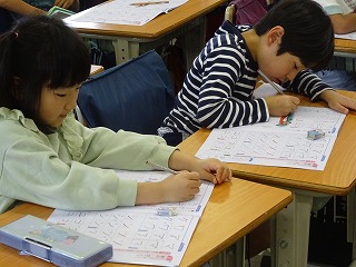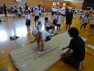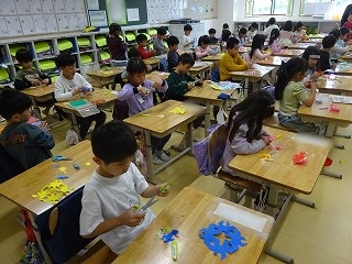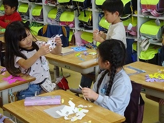 6年生が1年生の手を取って、やり方を教えてくれました。