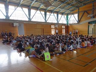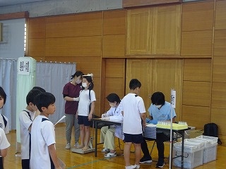 本日午前、体育館と第2グラウンドで、1年生と6年生が体力テストを行いました。