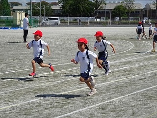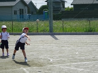 青い空の下で、のびのびと遊ぶ子どもたちです。