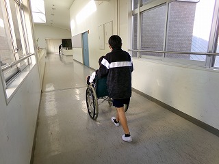 車椅子に乗ったり、押したりする体験活動をしていました。