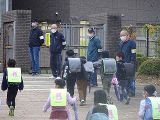 2022年12月1日 10時43分今日はとても寒い一日でした。そんな中,地域の方々が子どもたちにあたたかい「あいさつ」をプレゼントしてくれました。
